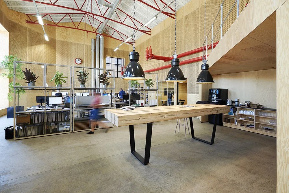 Kedelhallen, hvor ZENI arkitekter har sin tegnestue, er indrettet som et stort, højloftet og åbent arbejdsmiljø.